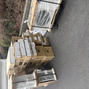 エアコン6台を、お客様と一緒に荷卸しして、建物の中まで運んでいく。