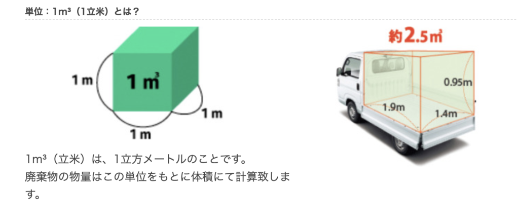 遺品整理や引っ越しで一軒まるごと片付ける場合は、立米(りゅうべい)で計算することが多いです。