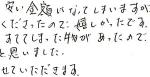 備品も揃っていたので、お客さまの予想よりも高額で買取りさせていただきました。