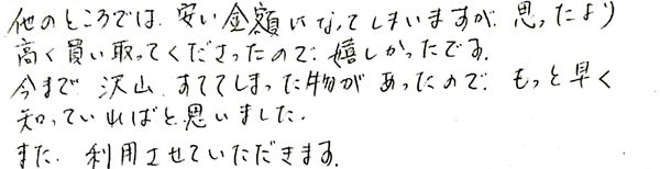 非常に美品だったので、お客さまの予想よりも高額で買取りさせていただきました。